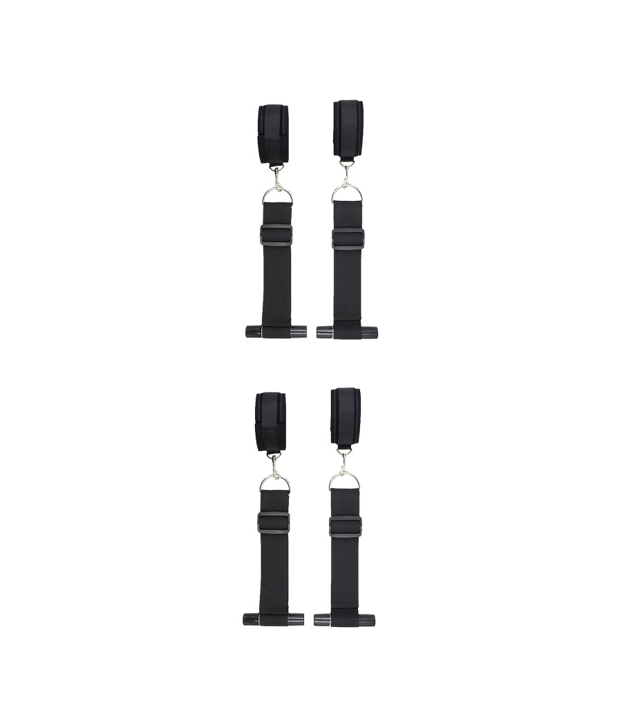 fije fácilmente a cualquier puerta para disfrutar de un poco de diversión bondage. Simplemente coloque los 2 tubos acrílicos sobre la parte superior de cualquier puerta abierta, coloque los otros 2 debajo de la parte inferior, cierre (y bloquee por seguridad) la puerta. Sujete a su pareja y disfrute. Viene con 4 correas ajustables, 2 esposas de muñecas y 2 esposas de tobillos, 4 tubos de acrílico para puerta y un antifaz de ojos satinado.