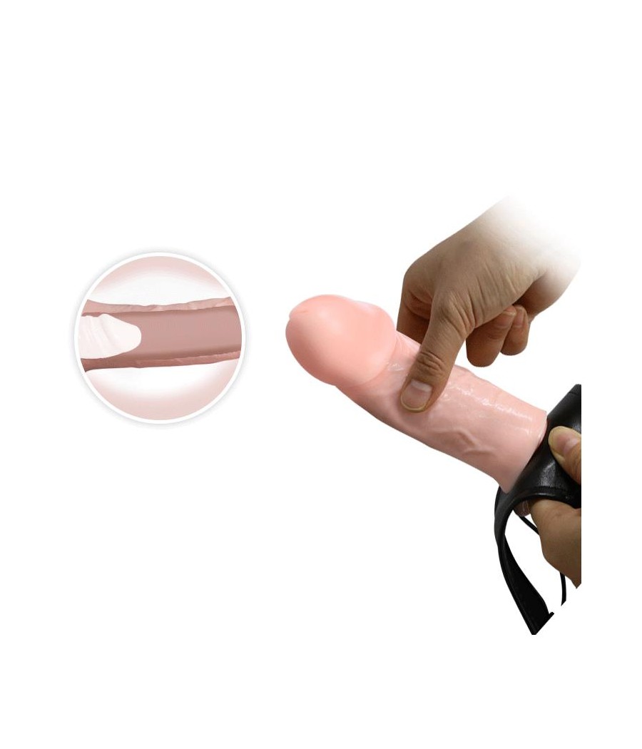 Un estupendo arnés con un dildo hueco para ti o para tu pareja. El dildo está perfectamente esculpido para parecer un pene de verdad, cuenta con un glande y un cuerpo curvado y venoso. El motor del dildo es poderoso pero a la vez muy silencioso y viene con un control remoto para dejarte las manos libres para que te ocupes de otras cosas.