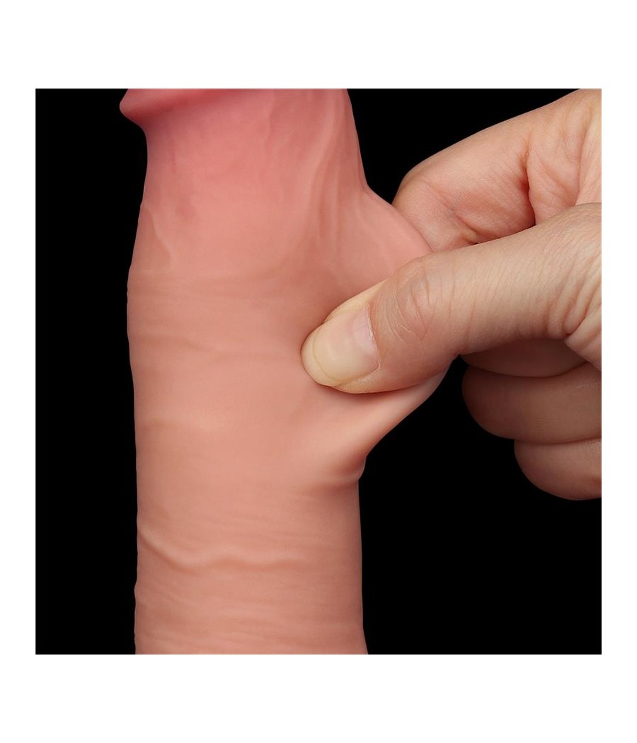 Diseñado con una precisión casi escultórica y dotado de una textura que imita a la perfección la piel humana, este dildo invita al cuerpo a perderse en un juego íntimo sin restricciones. Perfecto para quienes buscan una experiencia intensa sin vibraciones artificiales, su función retráctil aporta una nueva dimensión de control y confort. Y su ventosa de alta fijación convierte cualquier superficie lisa en un escenario para el placer.