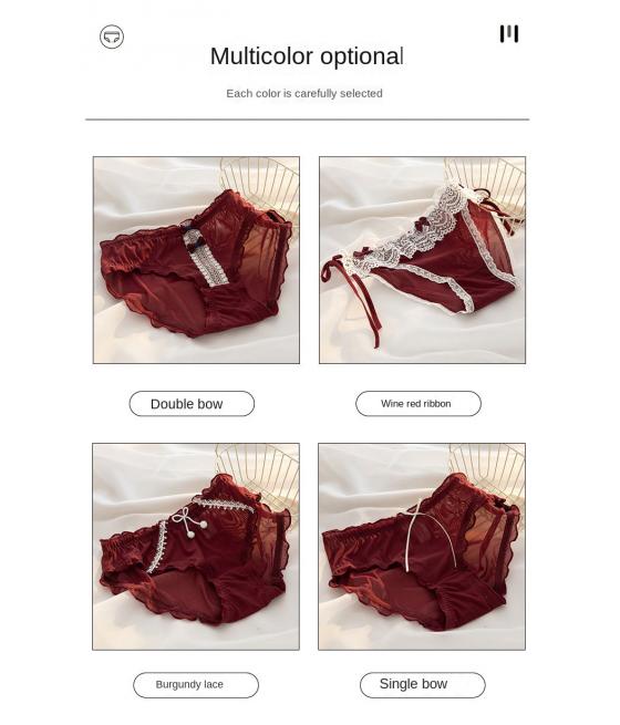 Tangas de encaje para mujer, ropa interior de cintura baja, estilo hueco, tentación de moda, Sexy, vino tinto Composición...
